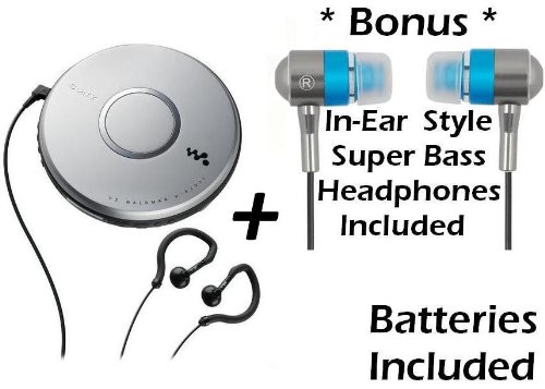 Sony Portable Skip-Free CD Player Walkman with Clip Style Earbud Headphones, LCD Display, Digital Mega Bass Sound, AVLS & CD-R/RW Playback - Silver + BONUS Secure-Fit Super Bass Metallic Earphones (Blue) * Batteries Included * Overview